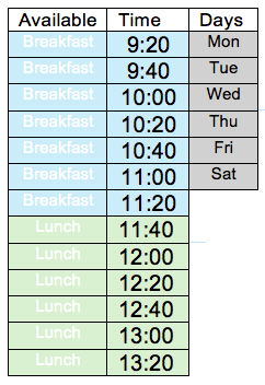 [Interested in Breakfast, Lunch or Both] Breakfasts 9:00-1:30pm and Lunch menu 11:30-1:30pm